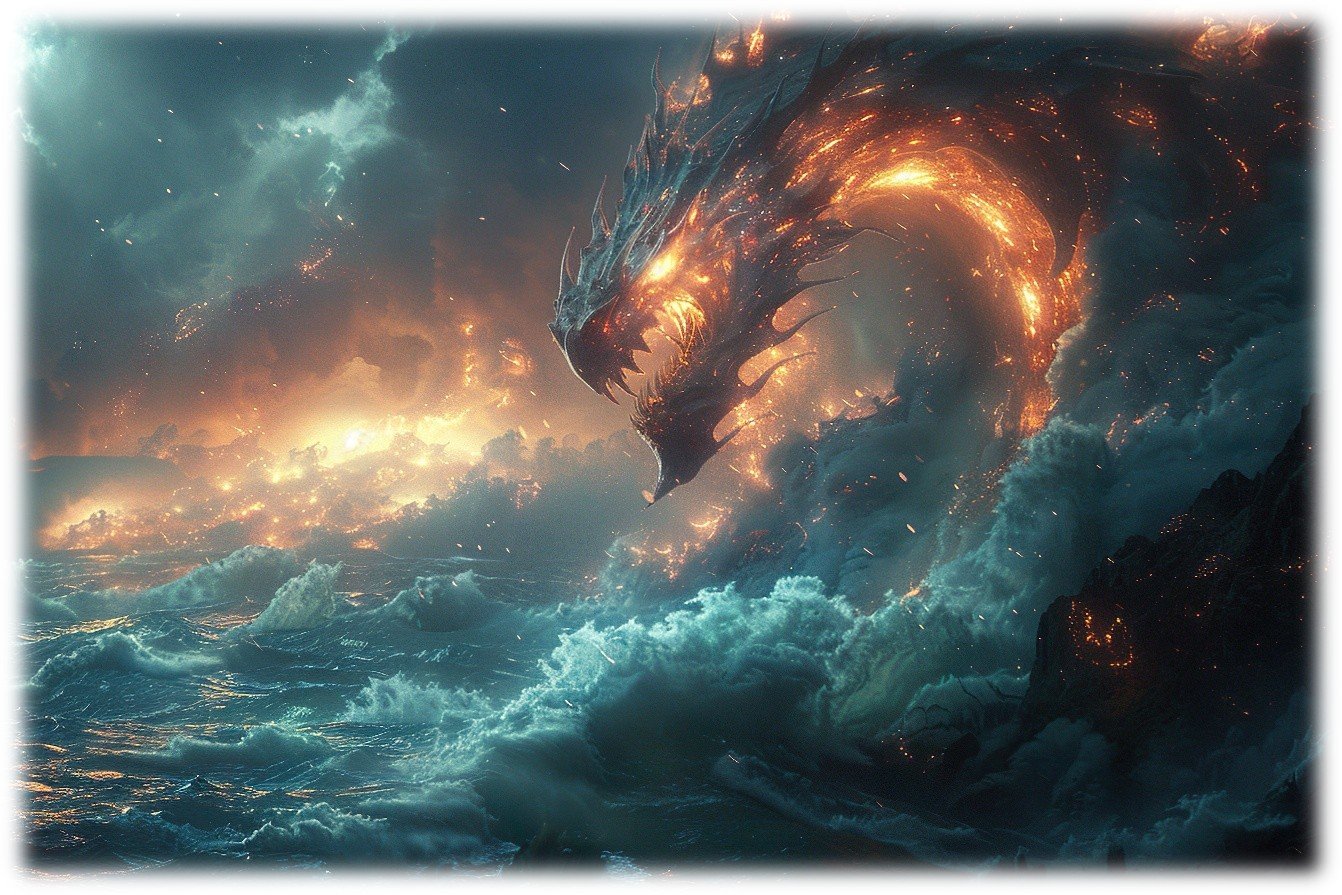 Thủy Thần biển Đông có 9 con trai, và ông Tám Rắn đó chính là người con trai thứ tám phụ trách thông thương cho cửa Ba Thắc. Nhiệm vụ của họ là mỗi ngày đi vào đất liền bằng chín lối khác nhau. Mỗi khi đi vào, họ hóa thân thành luồng nước lớn, những lớp vảy là những con sóng bạc, khi họ đi vào là nước thủy triều dâng lên, vừa làm lòng sông sâu thêm, vừa làm bờ sông mịn láng, và khi lên tới đầu nguồn, họ quay về biển Đông, đó là khi người ta nhìn thấy nước triều xuống. Hàng ngày, thủy triều lên xuống tạo cân bằng cho sinh thái tự nhiên và là hoạt động của thiên nhiên chi phối và hỗ trợ con người. Những Long Thần này còn làm ra những cơn mưa tưới cho vùng đồng ruộng bát ngát của đồng bằng miền Nam. Khi cất lên cao để tạo mưa, rồng nhả từ trong miệng ra viên trân châu là linh khí của mình, viên trân châu xoay tròn tạo ra những tia sáng lấp lánh mà chúng ta thường gọi là sét, cùng lúc với tiếng reo vang của Long Thần trở thành tiếng sấm.  Công việc bình thường từ muôn đời tới nay vẫn êm đềm trôi chảy cho tới khi…