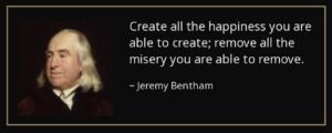 (The end of law is to augment happiness. The general object which all laws have, or ought to have, in common, is to augment the total happiness of the community; and therefore, in the first place, to excude, as far as may be, every thing that tends to substract from that happiness, in other wơrds, to exclude mischief.) –  Jeremy Bentham (1748 – 1832)